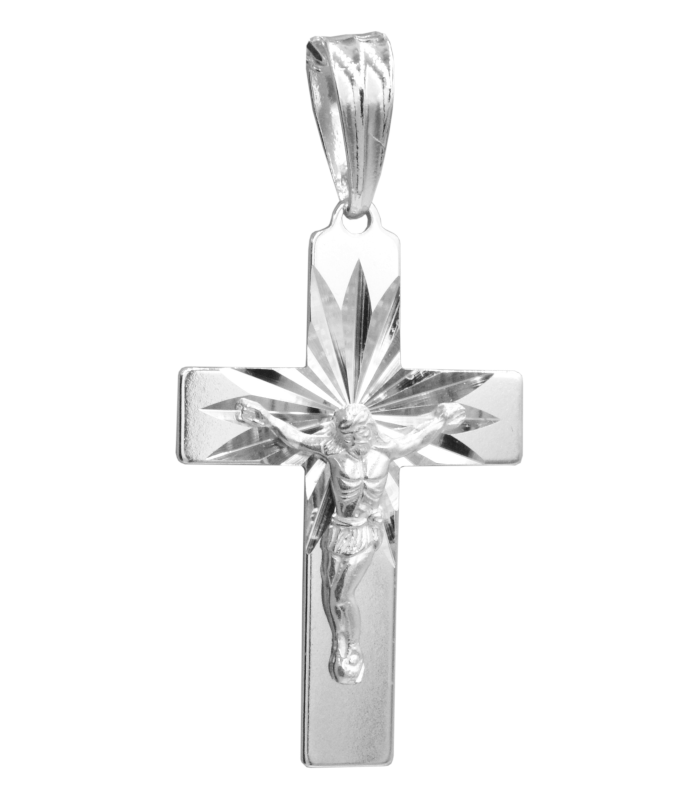 Duży srebrny krzyżyk zdobiony diamentowaniem